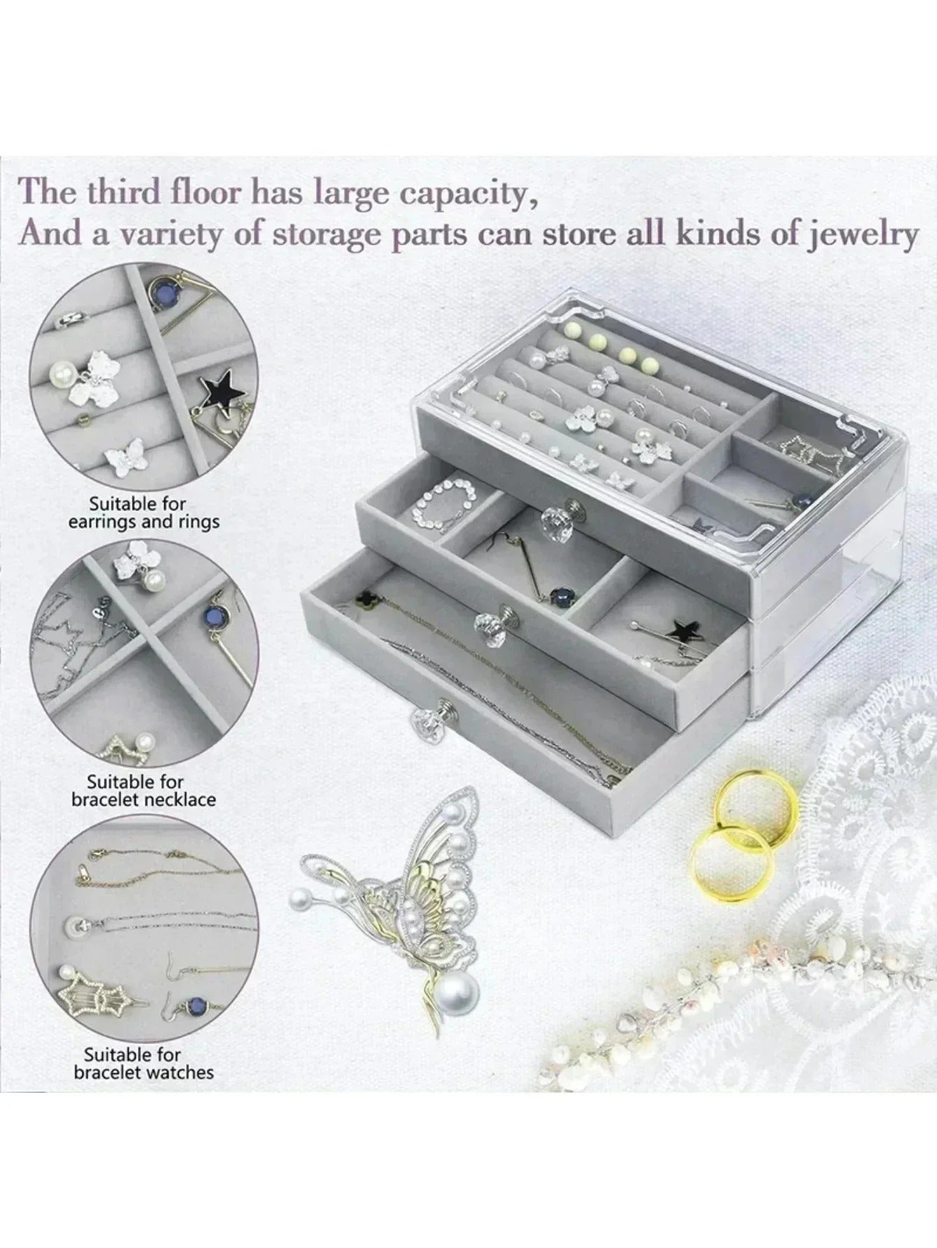 Organize your jewelry collection with elegance and ease using our 3-Tier Transparent Jewelry Case. Crafted from durable, crystal-clear acrylic, this sleek organizer offers a full view of your accessories while keeping them neatly arranged and easily accessible.